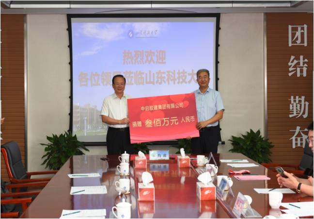近期,中啟膠建集團與山東科技大學(xué)校企合作捐贈儀式在山東科技大學(xué)舉行,中啟膠建集團黨委書記、總經(jīng)理郭道盛,建筑九公司經(jīng)理張全昌,校黨委書記羅公利、副校長張英杰及雙方有關(guān)部門負責(zé)人參加捐贈儀式。