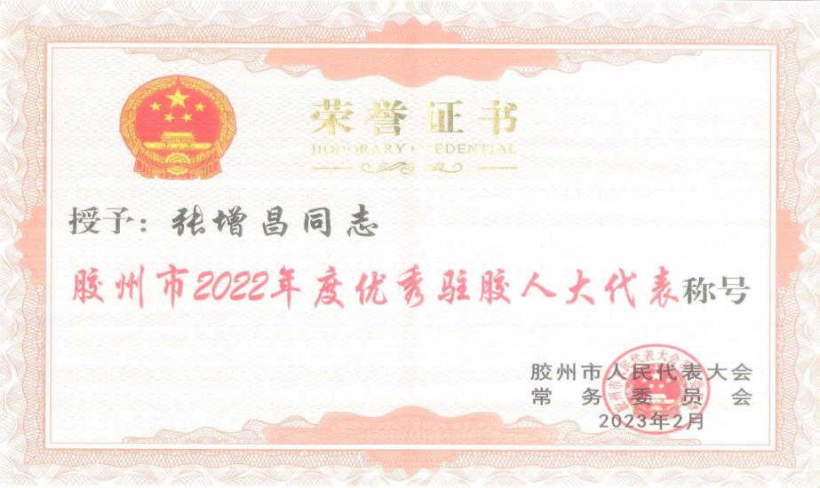 2月23日,膠州市人大工作創(chuàng)先爭優(yōu)座談會(huì)在市會(huì)議中心召開,會(huì)上隆重表彰了膠州市2022年度基層人大工作先進(jìn)單位、優(yōu)秀人大代表、優(yōu)秀駐膠人大代表、優(yōu)秀人大代表建議和人大代表“書香家庭”。青島市人大代表、中啟控股集團(tuán)黨委書記、總裁張?jiān)霾龢s獲“膠州市2022年度優(yōu)秀駐膠人大代表”稱號,并上臺(tái)領(lǐng)獎(jiǎng);膠州市人大代表、中啟膠建集團(tuán)黨委書記、總經(jīng)理郭道盛獲評“膠州市2022年度優(yōu)秀人大代表建議”和膠州市人大代表“書香家庭”稱號。