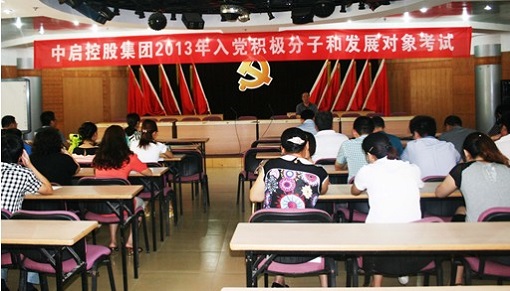 2013年7月6日上午8點(diǎn)30分,中啟控股集團(tuán)黨委組織30多名入黨積極分子和發(fā)展對象在集團(tuán)二樓多功能廳進(jìn)行黨建知識考試,集團(tuán)黨委邢吉忠副書記到考場監(jiān)督考試。