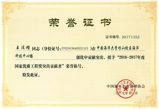 近日,“2016-2017年度國(guó)家優(yōu)質(zhì)工程獎(jiǎng)總結(jié)表彰大會(huì)”在北京人民大會(huì)堂隆重召開,由建筑七公司承建的中國(guó)海洋大學(xué)嶗山校區(qū)海洋科技中心樓工程榮獲國(guó)家優(yōu)質(zhì)工程獎(jiǎng)。建筑九公司參建的黃島國(guó)家石油儲(chǔ)備地下水封洞庫(kù)工程榮獲國(guó)家優(yōu)質(zhì)工程金質(zhì)獎(jiǎng),建筑七公司參建的萊西文化中心、青島第三十九中學(xué)規(guī)劃建設(shè)項(xiàng)目一期工程也紛紛獲得國(guó)家優(yōu)質(zhì)工程獎(jiǎng)。建筑七公司總經(jīng)理王法精同志、副經(jīng)理張甡同志、建筑九公司副經(jīng)理薛長(zhǎng)青同志在創(chuàng)優(yōu)過(guò)程中貢獻(xiàn)突出,被分別授予“2016-2017年度國(guó)家優(yōu)質(zhì)工程獎(jiǎng)突出貢獻(xiàn)者”、“2016-2017年度國(guó)家優(yōu)質(zhì)工程金質(zhì)獎(jiǎng)突出貢獻(xiàn)者”的榮譽(yù)稱號(hào)。