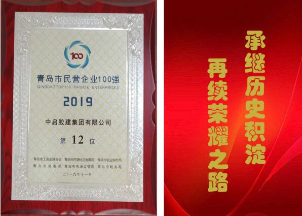 再續(xù)榮耀之路!中啟膠建集團(tuán)喜獲青島民企百?gòu)?qiáng)第12位