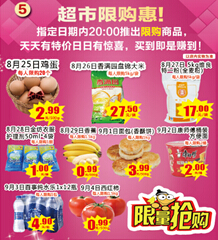 活動一:超市會員4倍積分?;顒訒r間:8月29日-8月30日;9月5日-9月6日。