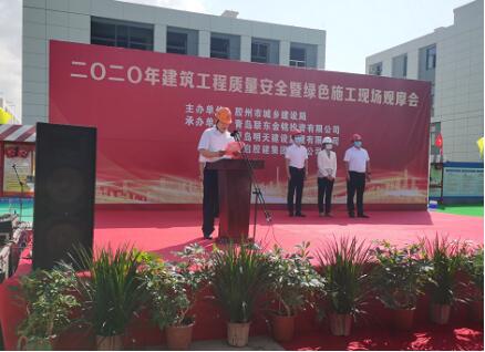 膠州市城鄉(xiāng)建設(shè)局副局長(zhǎng)高磊、中啟膠建集團(tuán)有限公司常務(wù)副總經(jīng)理馬振聲出席了開(kāi)幕式,并分別致辭。膠州市質(zhì)監(jiān)站站長(zhǎng)張鵬程主持了開(kāi)幕式。高磊副局長(zhǎng)在致辭中寄語(yǔ)全市建筑業(yè)從業(yè)者,通過(guò)本次觀摩活動(dòng),互相學(xué)習(xí),積極創(chuàng)新,進(jìn)一步提高膠州市建筑業(yè)的整體水平,力爭(zhēng)在三年內(nèi)改變膠州市建筑業(yè)大而不強(qiáng)的現(xiàn)狀,從技術(shù)創(chuàng)新、新材料應(yīng)用、新管理方式應(yīng)用、綠色建造等全面達(dá)到青島市領(lǐng)先水平。
