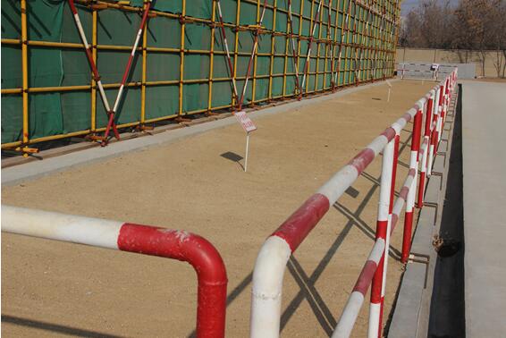 建筑物周邊創(chuàng)新設(shè)置安全防墜落緩沖砂帶及定型化防護(hù)欄桿