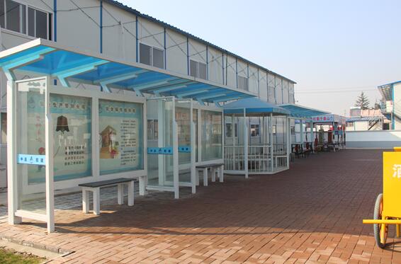 現(xiàn)場設(shè)置職工休息區(qū)、吸煙喝水亭、安全文化宣傳欄