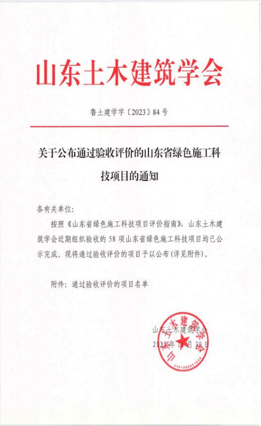 自項(xiàng)目立項(xiàng)以來,集團(tuán)、分公司、項(xiàng)目部對(duì)該項(xiàng)目的綠色施工實(shí)施情況高度重視,確定了綠色施工實(shí)施方案并在項(xiàng)目上落實(shí);項(xiàng)目定期進(jìn)行自評(píng),及時(shí)對(duì)比分析各項(xiàng)指標(biāo)完成情況,并積極采取改進(jìn)措施。通過不懈努力,該項(xiàng)目于2022年通過了山東省綠色施工科技項(xiàng)目的中期評(píng)價(jià),并于今年11月順利通過了山東省綠色施工科技項(xiàng)目評(píng)價(jià)驗(yàn)收。通過評(píng)價(jià),項(xiàng)目達(dá)到預(yù)期制定的“五節(jié)一環(huán)?!蹦繕?biāo),綠色施工科技示范效果良好。