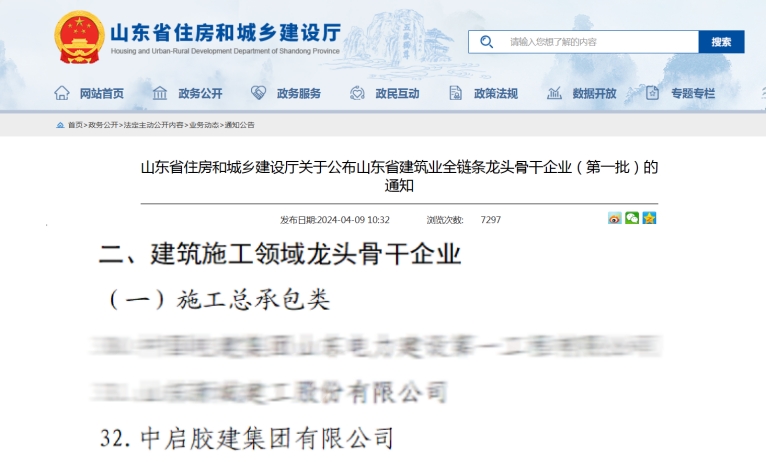 4月9日,山東省住房和城鄉(xiāng)建設(shè)廳公布了山東省建筑業(yè)全鏈條龍頭骨干企業(yè)(第一批)名單,我公司在施工總承包和外出施工兩類建筑施工領(lǐng)域均榮獲“山東省建筑業(yè)全鏈條龍頭骨干企業(yè)”稱號。