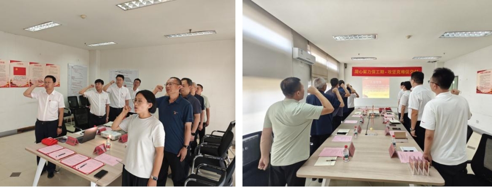 活動(dòng)伊始,全體黨員在鮮紅的黨旗下,高舉右拳,重溫入黨誓詞。莊嚴(yán)的誓詞在會(huì)場(chǎng)內(nèi)回蕩,激勵(lì)著每一位黨員不忘初心、牢記使命,在項(xiàng)目建設(shè)中勇挑重?fù)?dān)、沖鋒在前,以實(shí)際行動(dòng)踐行入黨誓言。
